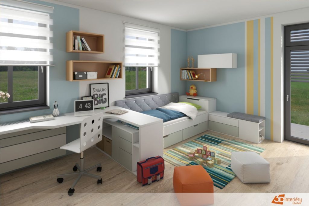Návrh dětských pokojíčků i studentských pokojů jak pro chlapce tak dívky, umožní dokonalé kombinace barev, které by jste se jinak nedokázali představit. Navrhujeme nadčasové dětské pokoje, které lze do budoucna jednoduše měnit pouze změnou výmalby či dekorací. Šetříme Váš čas i peníze, originální nápady, které nezevšední jsme načerpali 15 letou praxí ve tvorbě dětských interiérů.